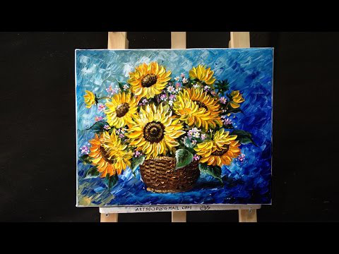 How to paint sunflower with acrylic paint using a palette knife