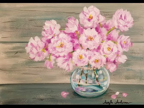 Easy Beginner Acrylic Painting Tutorial Pink Spring Flowers in Glass Vase LIVE