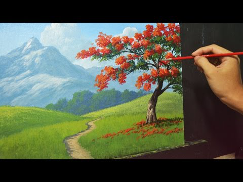 Acrylic Landscape Painting Lesson - The Fire Tree by JMLisondra