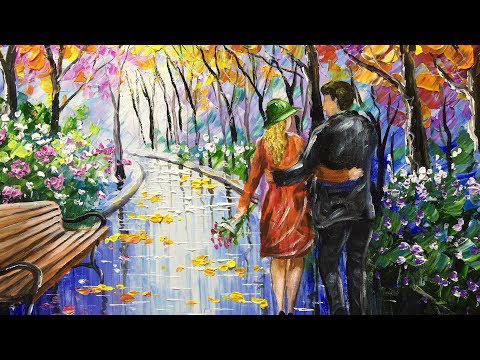 Painting of a couple walking in the park